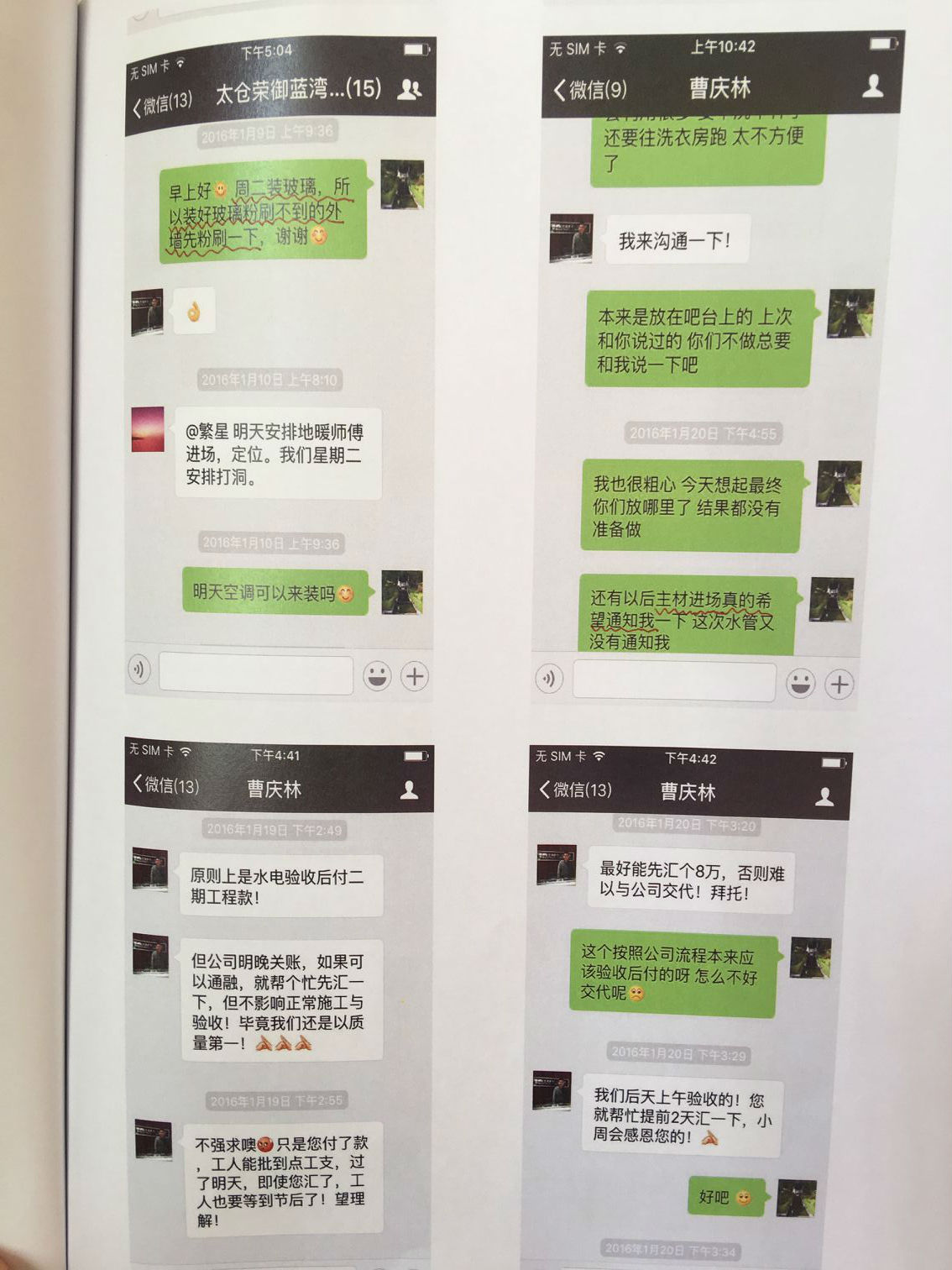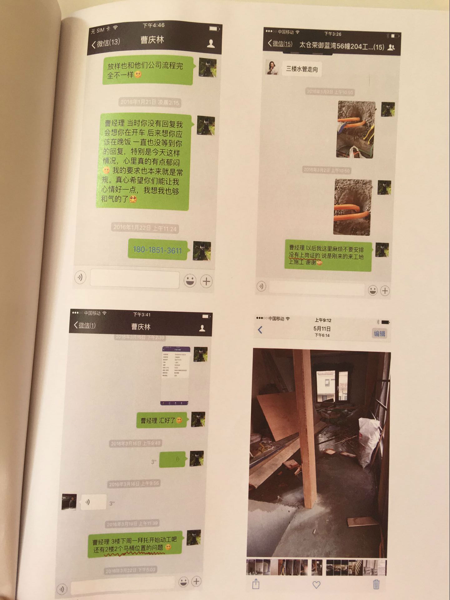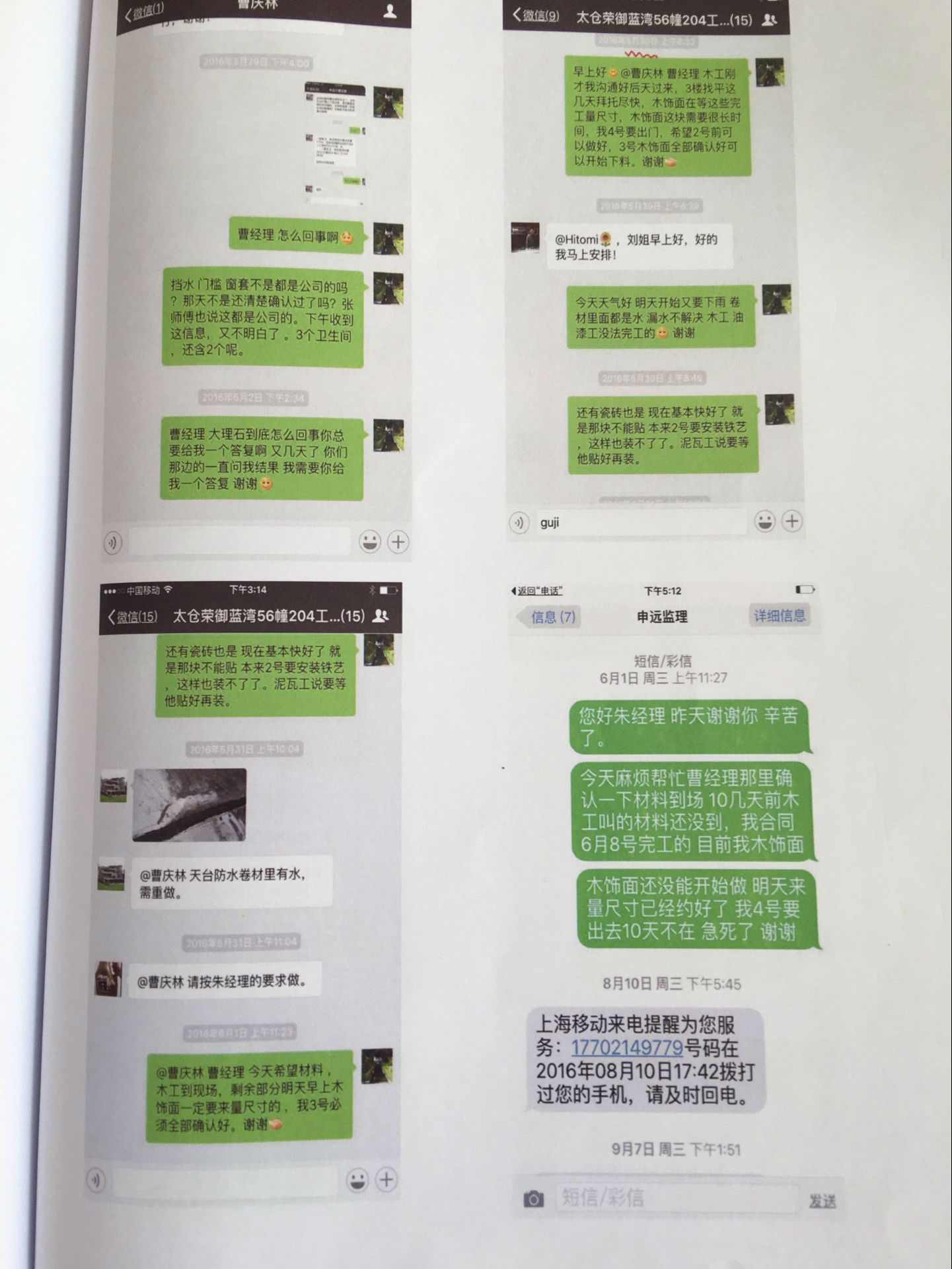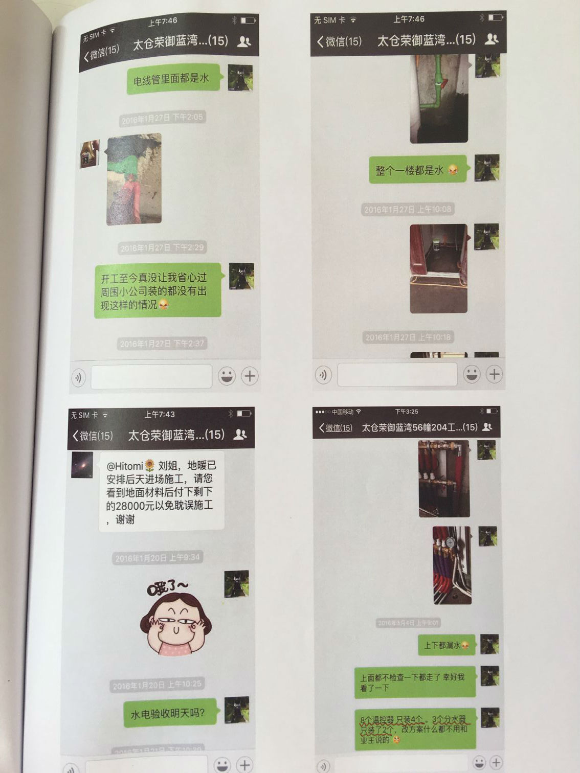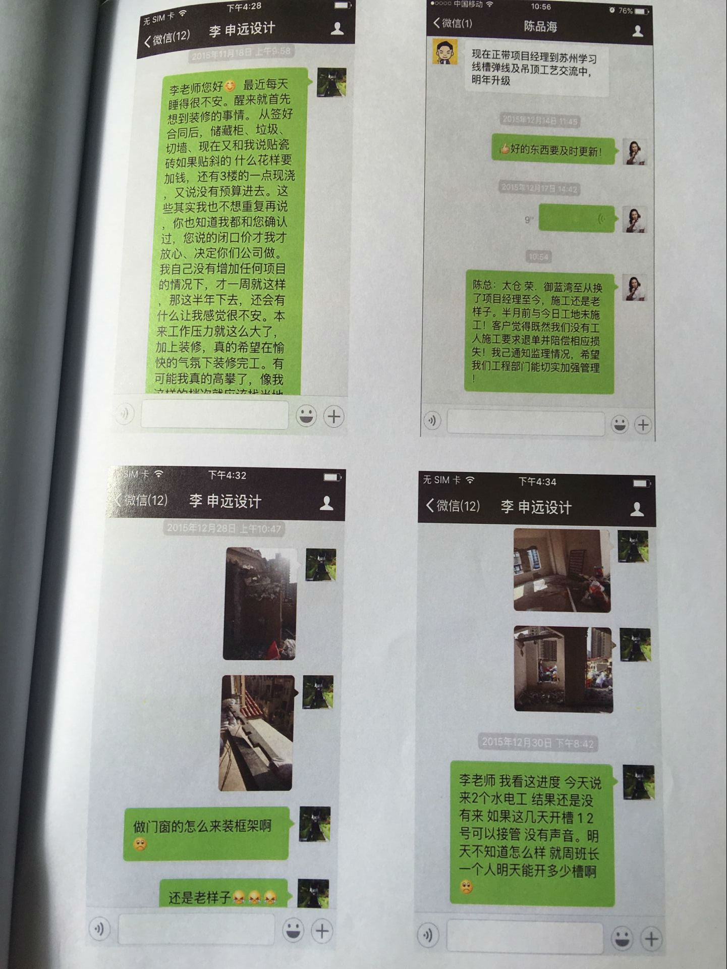 我和申*2015年11月簽下合同,6月8號竣工,可一拖再拖至今乳膠漆未刷。解決問題太以公司利益出發(fā),明知自己責(zé)任能推則推。新老砌墻沒按照規(guī)范施工導(dǎo)致嚴(yán)重滲水,開始要求業(yè)主自己外面找人修的,一樣以后一切漏水與申*無關(guān)了。最后雙方各承擔(dān)一半責(zé)任,外立面新砌墻不做防水預(yù)算應(yīng)該嗎?沒做預(yù)算應(yīng)該告知業(yè)主需要做吧,直至外墻嚴(yán)重滲水才知道這么重要的砌外墻施工太太馬虎,還推卸責(zé)任。買基本尺寸420寬馬桶都放不下,返工材料也由業(yè)主承擔(dān)。施工圖和效果圖不一致。入戶進(jìn)門、樓梯儲藏間照明都沒有。20平方左右的客臥最終才發(fā)現(xiàn)放衣柜地方?jīng)]有留(床背景和吊頂限制了床的位置)開工到現(xiàn)在施工流程基本和申遠(yuǎn)宣傳的施工流程不搭邊。合同承諾的閉口合同,合同內(nèi)所包含的,都是陷阱。項目經(jīng)理介紹的木飾面廠家,把我合同上的美國進(jìn)口紅橡做成多層板貼皮的了。答應(yīng)返工卻又失信白等了一個多月。這11月的裝修過程太多離譜問題已經(jīng)嚴(yán)重身心疲憊了。尊敬的申*領(lǐng)導(dǎo)們:   你們好!我是太倉景瑞藍(lán)灣業(yè)主,2015年11月2日,我滿懷欣喜與申*簽下了裝修施工合同,合同價31.5萬元。當(dāng)時設(shè)計師多次聲明是閉口合同,只要業(yè)主不改變方案就不會有增項故合同總價肯定不會增加。既然是閉口價,再加上對申*和設(shè)計師的信任,所以也就沒有慎重核實合同及預(yù)算表。輕信了設(shè)計師的口頭承諾就簽下合同了(這是我自己的責(zé)任)。結(jié)果多次聲明合同價內(nèi)包括的由木工現(xiàn)場定制的衣帽間和鞋柜柜體預(yù)算里不含了(四十五平方,價值2.9萬元),大理石、沐浴房有3個,但是預(yù)算只有兩個,窗臺是沒有了。開工當(dāng)天就開始增項。什么敲墻、丟垃圾都不在合同預(yù)算內(nèi)。目前還不清楚到底還有多少不在預(yù)算之內(nèi)。因為至今還沒有看到我的增減項。(7月我就要求過公司核實增減項目的)不知道是什么理由拖延至今日。不交給業(yè)主明細(xì)單,不遵守承諾欺騙業(yè)主還反問:“把你賣了你都不知道?。俊毕胂胧亲约禾煺媪?。白紙黑字才是真還好有錄音。到最后和我說以后設(shè)計方面問題來找我,其它問題不要找我,我納悶了,我這合同可是和您簽訂的,預(yù)算部也是由您吩咐照做的,怎么又沒責(zé)任了。再看圖紙,多處施工圖與效果圖不一致??蛷d確認(rèn)好的背景造型,效果圖也都是放電視柜,可施工圖卻還是個壁爐。兩間臥房的吊頂、背景都出錯,出錯后過來交接又沒有想周全,所以導(dǎo)致一樓房間吊頂變成平頂。很大的客臥連衣櫥的位置都沒留,因為床總要跟著床頭背景和吊頂走。施工圖您讓學(xué)生做可以理解,但您總要審核后交給施工隊吧?拿著施工圖交接時還沒發(fā)現(xiàn)嗎?二十多年的主任設(shè)計師我深信了。其實不是最后施工出現(xiàn)那么多的問題,也沒準(zhǔn)備再提起,認(rèn)了。誰叫我自己不仔細(xì)看合同、預(yù)算表而去相信我眼前的人是誠實的。?材料商:買申*的材料不是有雙重保障嗎?出于無奈,設(shè)計師想出了一個非常完美并可以牢牢套住我的辦法,就開始要求45萬最終以買滿35萬的材料來解決。買滿就做柜體。當(dāng)時設(shè)計師保證公司供應(yīng)商是市場最低價而且又是雙重保障。我又再次相信了他,盡量配合選擇申*供應(yīng)商,但是事實并非是市場最低價,其實有的都高于市場價(其實差不多價也無所謂了)??勺铍x譜的是地暖,合同內(nèi)8個溫控器可以只做4個,因為排水管問題后來勉強增加了一路,三個分水器也只做了2個,這樣大改方案,偷工減料,并且我當(dāng)時也在現(xiàn)場,都只字不提。只讓我付清余款。少裝的溫控器、分水器價值2000多元,還好被我發(fā)現(xiàn)。請問領(lǐng)導(dǎo)們,這個時候雙重保障體現(xiàn)在哪里?材料商供應(yīng)出現(xiàn)這樣離譜的問題,你們出面解決了嗎?還是根本就是和申*商量好的“最佳方案”?  ?    木飾面:材料訂購會就選擇了申*供應(yīng)商,后來多次確認(rèn)圖紙包括價格,最終三月準(zhǔn)備簽合同,但是合同當(dāng)天突然漲價3萬,最終因為感覺不守信而沒有簽成合同。難道柜體的費用最終還真是由業(yè)主自己買單?只是變相操作了而已。這么專業(yè),試問哪位業(yè)主能應(yīng)付得來?施工:7月初,油漆工準(zhǔn)備做最后乳膠漆,但是因為梅雨天氣不適合做油漆,所以驗收當(dāng)日我要求過了梅雨天氣再刷,結(jié)果反被要求簽延期協(xié)議。意思就是因為我要求延期刷乳膠漆而導(dǎo)致了延期。我合同完工日是6月8號,按照合同辦事,刷乳膠漆會導(dǎo)致在梅雨季節(jié)嗎?你們公司對工期延期要求嚴(yán)格,是7月才出的制度嗎?自己的責(zé)任自己承擔(dān),又是什么無理要求。然而第二天,下大雨了,凡是新老墻體砌墻部分全部嚴(yán)重滲水。這時候看申*怎么解釋的:漏水是因為沒有做防水,不做防水的原因是因為預(yù)算里面沒有,好吧,好像又沒有責(zé)任了。其實你們都知道是因為施工原因造成。但你們的責(zé)任能推就推。想業(yè)主反正不懂,還竟然多次讓我在外面找人自己解決。這樣滲水就跟你們完全沒關(guān)系。新砌墻外立面不做防水預(yù)算?就算