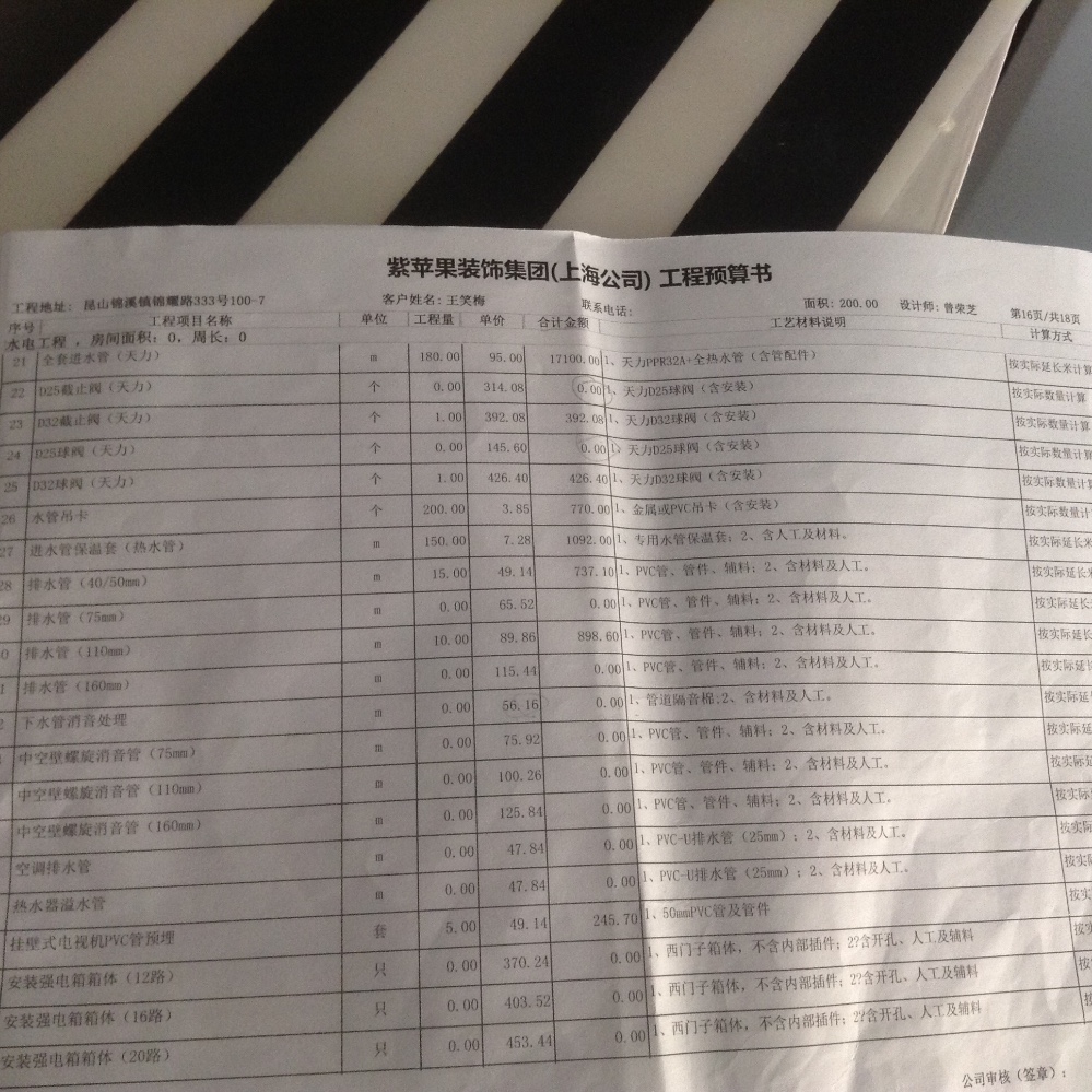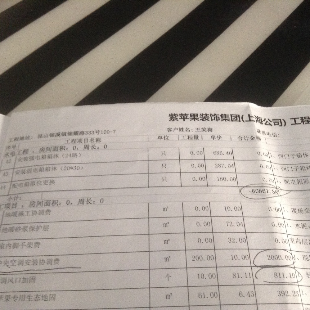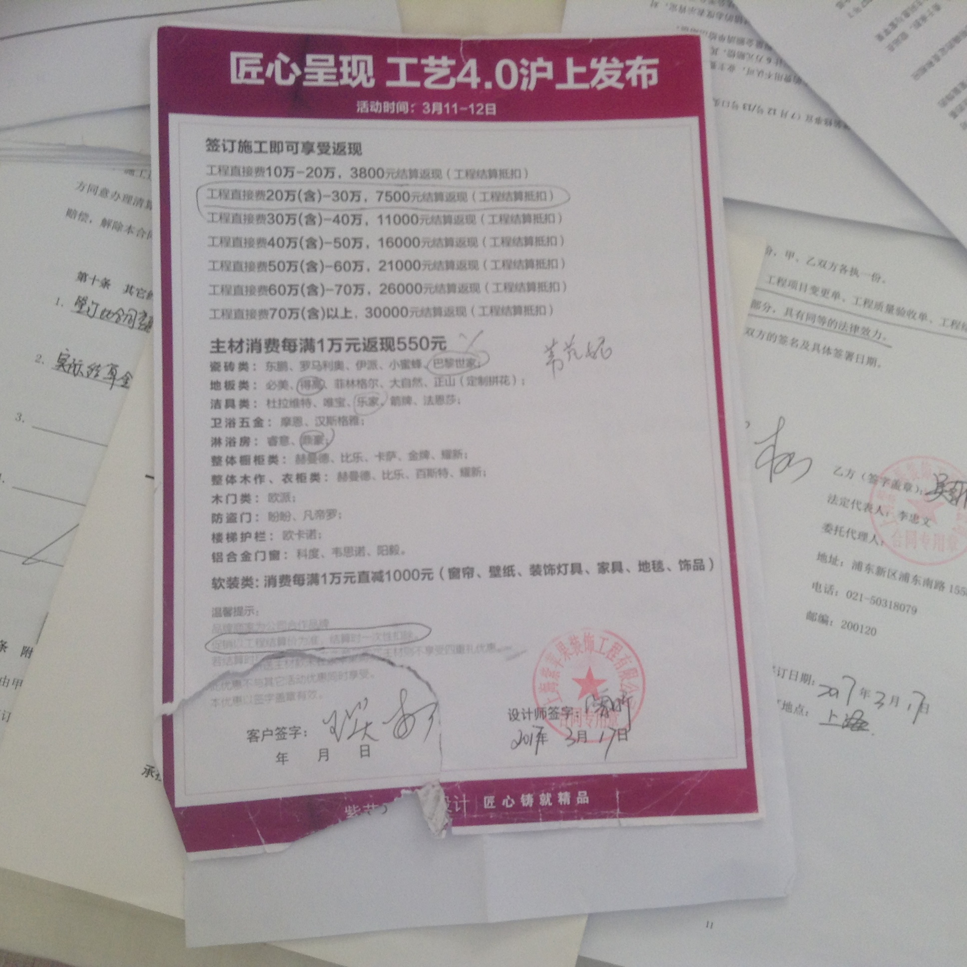 在施工進(jìn)程中,我們發(fā)現(xiàn)我們自己手中的設(shè)計(jì)圖紙與施工經(jīng)理和設(shè)計(jì)師手中的圖紙都不一樣,三方分別有三個(gè)不同版本的三份設(shè)計(jì)圖,且內(nèi)容出入很大,初步統(tǒng)計(jì)不下幾十處。他們手中的圖比我們的手中的圖在水電等各個(gè)方面內(nèi)容詳細(xì)很多。我們提出這個(gè)疑問(wèn),沒(méi)有人理采,然后設(shè)計(jì)師、施工經(jīng)理、水電師傅都提出再加錢的要求。