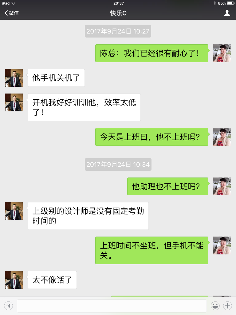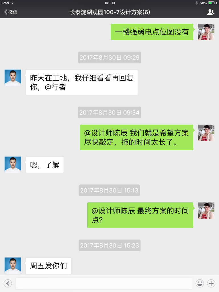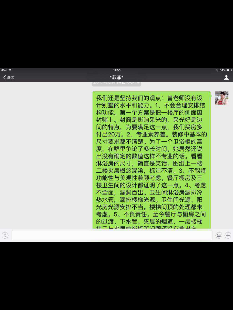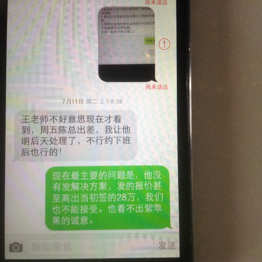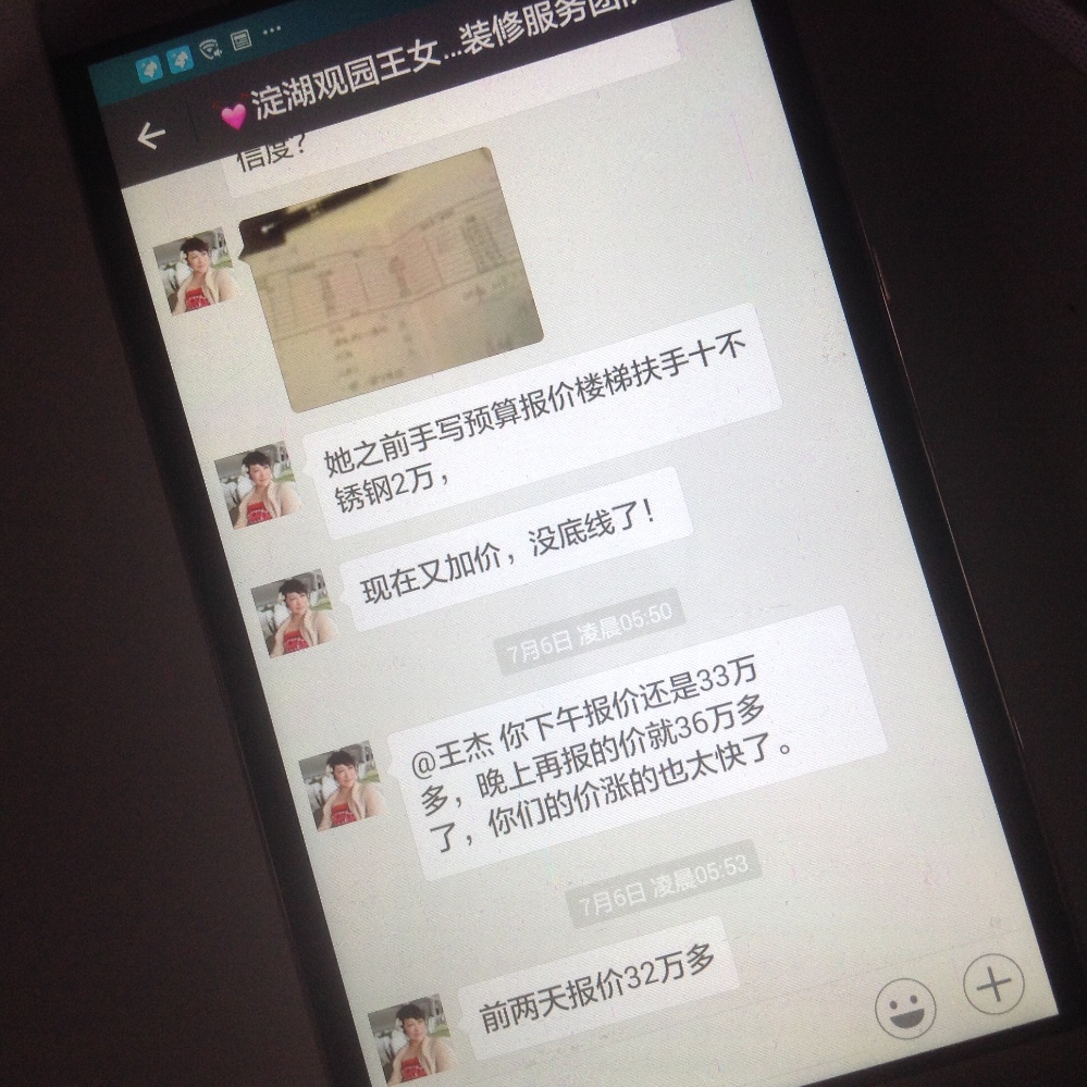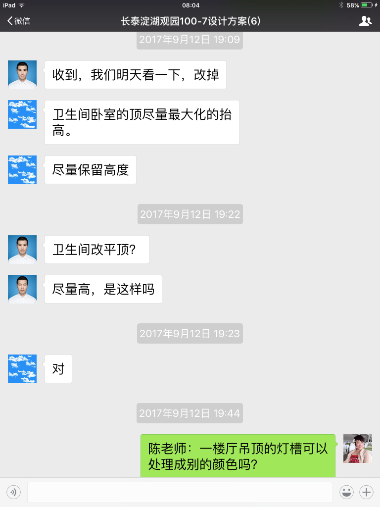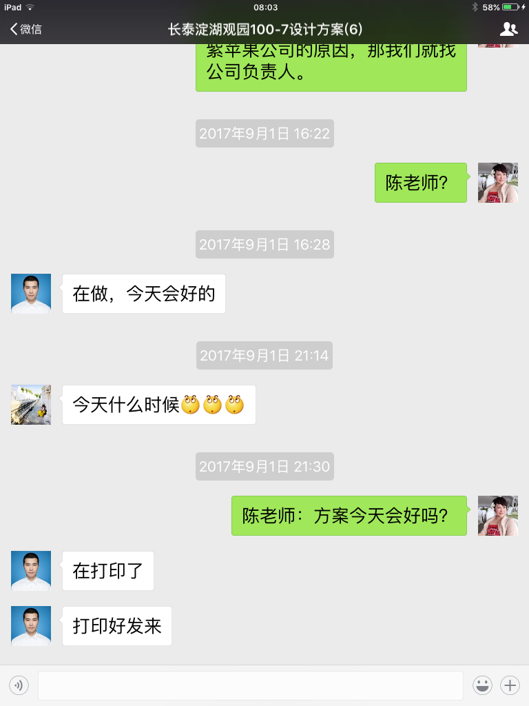 從施工一開(kāi)始,我們發(fā)現(xiàn)設(shè)計(jì)圖有問(wèn)題時(shí),就在群里表達(dá)了我們的看法,擔(dān)心有看不到的潛在風(fēng)險(xiǎn)發(fā)生。隨著工程的推進(jìn),我們不斷發(fā)現(xiàn)這樣或那樣的問(wèn)題,更加重了我們的擔(dān)憂。我們?cè)B續(xù)六天在與客戶經(jīng)理、設(shè)計(jì)部經(jīng)理的群里反映問(wèn)題、表達(dá)我們的述求,但沒(méi)人出來(lái)解決問(wèn)題,他們采取了不理不睬的態(tài)度,施工照常進(jìn)行。再后來(lái)我們將問(wèn)題直接反映給公司高層后。讓我們感到不可思議的的是紫蘋果公司高層解決問(wèn)題的方法卻是增加項(xiàng)目?jī)r(jià)款。由原來(lái)的28萬(wàn)多提到36萬(wàn)多。實(shí)際就是將紫蘋果自身過(guò)錯(cuò)造成的損失變相轉(zhuǎn)嫁到我們身上。3月17號(hào)簽合同,工期180天。正常情況下,9月16號(hào)應(yīng)該完工??勺咸O果從5月18號(hào)就將水電做到一半的工地停工,換了陳姓設(shè)計(jì)師,說(shuō)完善圖紙??蓤D紙我們一直沒(méi)拿到,問(wèn)題到現(xiàn)在還未解決。