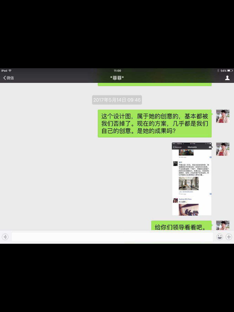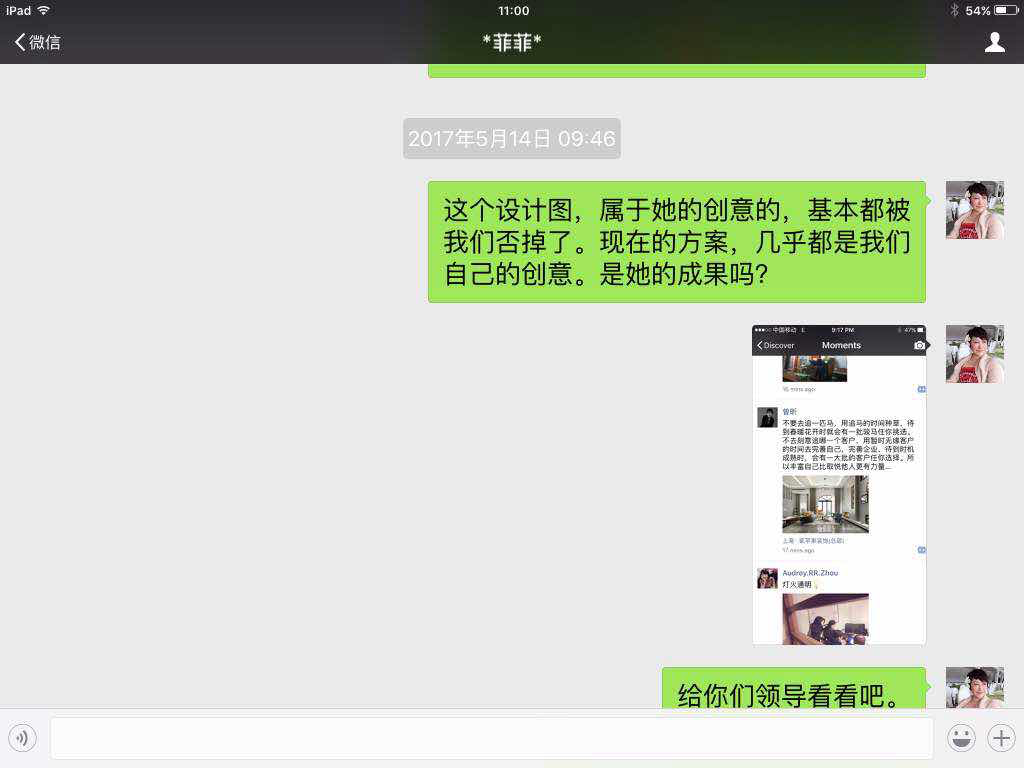 我們提出自己的裝修風(fēng)格、理念。要求不落俗套、有個(gè)性。并讓設(shè)計(jì)師按我們的想法出效果圖。在未經(jīng)我們?cè)试S的情況下,設(shè)計(jì)師竟然擅自將效果圖發(fā)了朋友圈