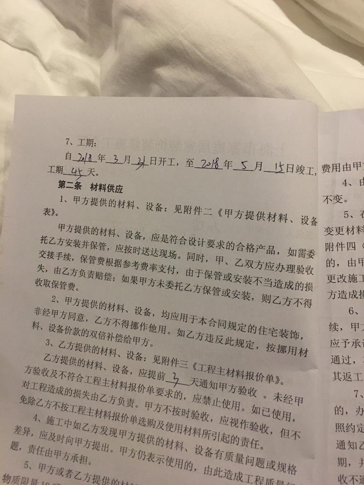 5.合同約定5月15日完工,到今天7月19日為止還未完工!