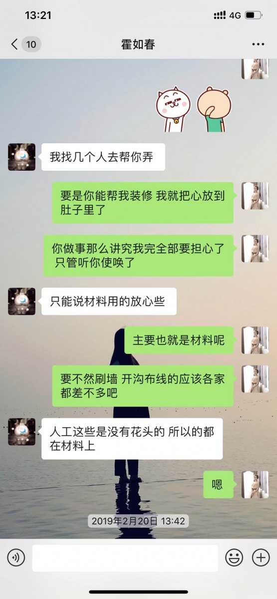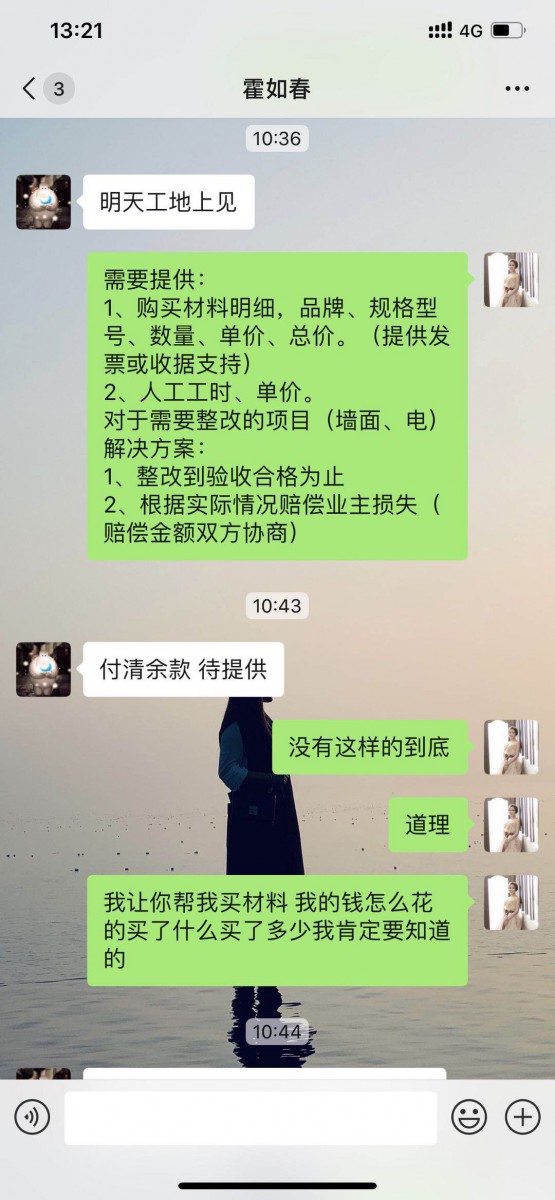 由于是同鄉(xiāng),施工前不愿意跟我簽裝修合同不給具體報(bào)價(jià),要過(guò)多次均未給,也就沒(méi)有要了