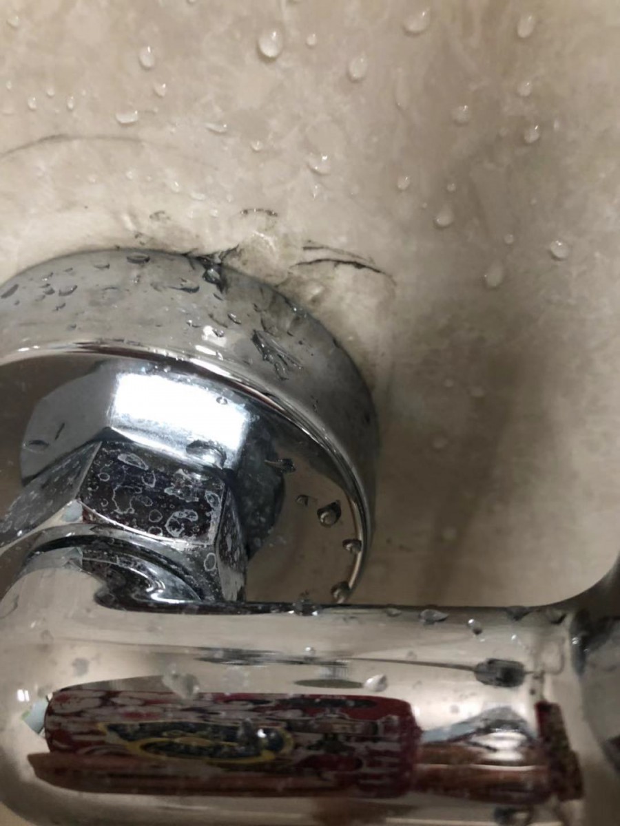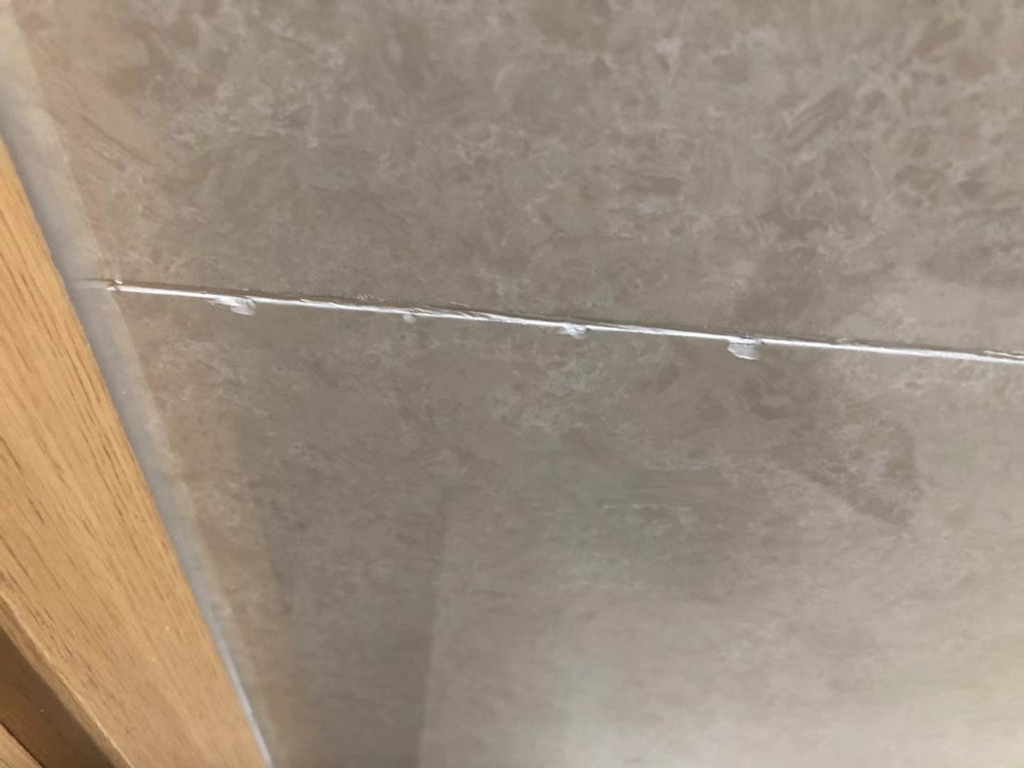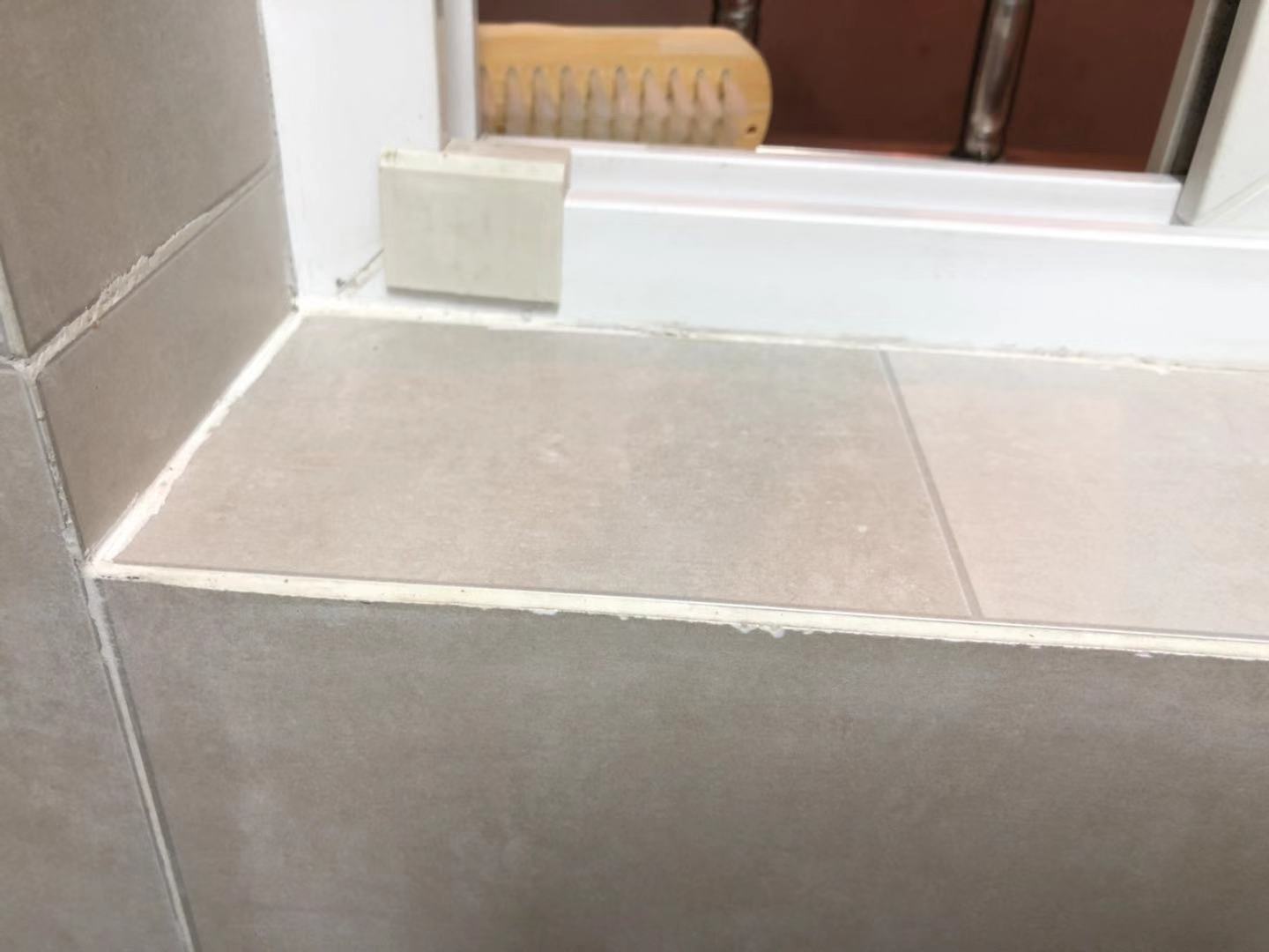 3. 15平方(衛(wèi)生間、廚房、門廳)裝修周期花了3個(gè)月,閑置時(shí)間遠(yuǎn)長于施工時(shí)間,每次都有不同的借口,可以慢工也沒出細(xì)活,墻磚除了損壞,還不平整,地磚縫隙不對齊,在沒征得同意情況下鋪設(shè)過門石來掩飾縫隙歪斜。
