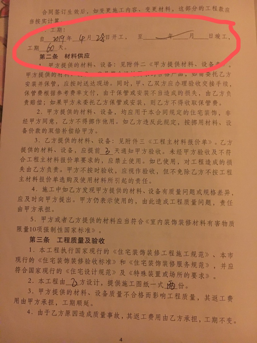 合同約定裝修時間從2019年4月28日開始,施工期60天,應(yīng)該是到6月底完工交房的,可是現(xiàn)在已經(jīng)10月13日了,工程還未過半,期間一直惡意拖延,不到付款期就要挾付款。