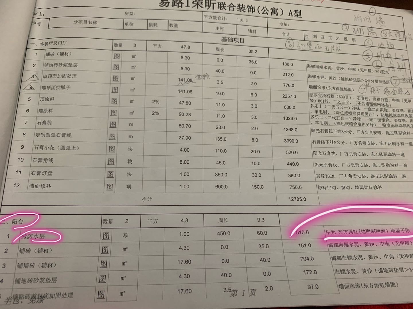 預(yù)算上有陽(yáng)臺(tái)要做防水這項(xiàng),實(shí)際沒(méi)有做。儲(chǔ)物間預(yù)算上有要做東方雨虹墻固,批膩?zhàn)?,刷涂料。但在?shí)際操作中全部被省略。目前消保委也參與調(diào)解,但是易路榮昕態(tài)度強(qiáng)硬,拒不整改。