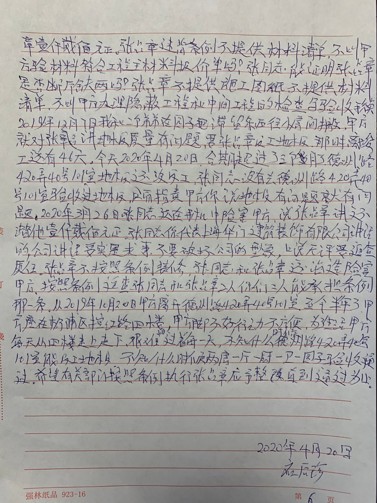 2019年10月21號(hào)至2020年1月21號(hào)竣工看房次故如下,投訴需求是我裝修過程中材料裝飾公司沒有業(yè)主驗(yàn)收,隱蔽工程水電沒有驗(yàn)收,其他節(jié)點(diǎn)也沒有驗(yàn)收,在裝修過程中裝飾公司付款超前無禮要求先付,目前地板有松動(dòng)造成我無法入住,希望有關(guān)部門幫助我一個(gè)單身孤寡老人的需求,我本人在實(shí)在沒有辦法的情況下,通過其他好心人的告訴,走進(jìn)了上海裝潢網(wǎng)投訴平臺(tái)找到了他們劉老師,我真的是投訴無門啊,他還誣陷我欠他1200元,還說你質(zhì)量有問題就有問題等等。。。。。。以上闡述不夠詳細(xì),闡述詳細(xì)請(qǐng)看下面圖片整個(gè)經(jīng)過。