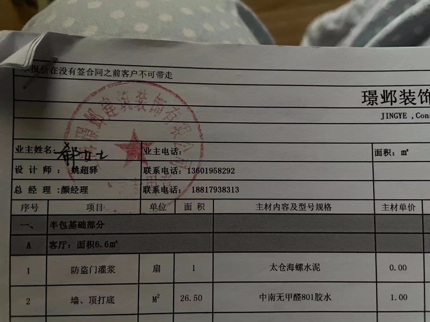 | 裝修面積 | 35m2 | 投訴人手機(jī) | 1330180**** | 被投訴人手機(jī) | 1881793**** |