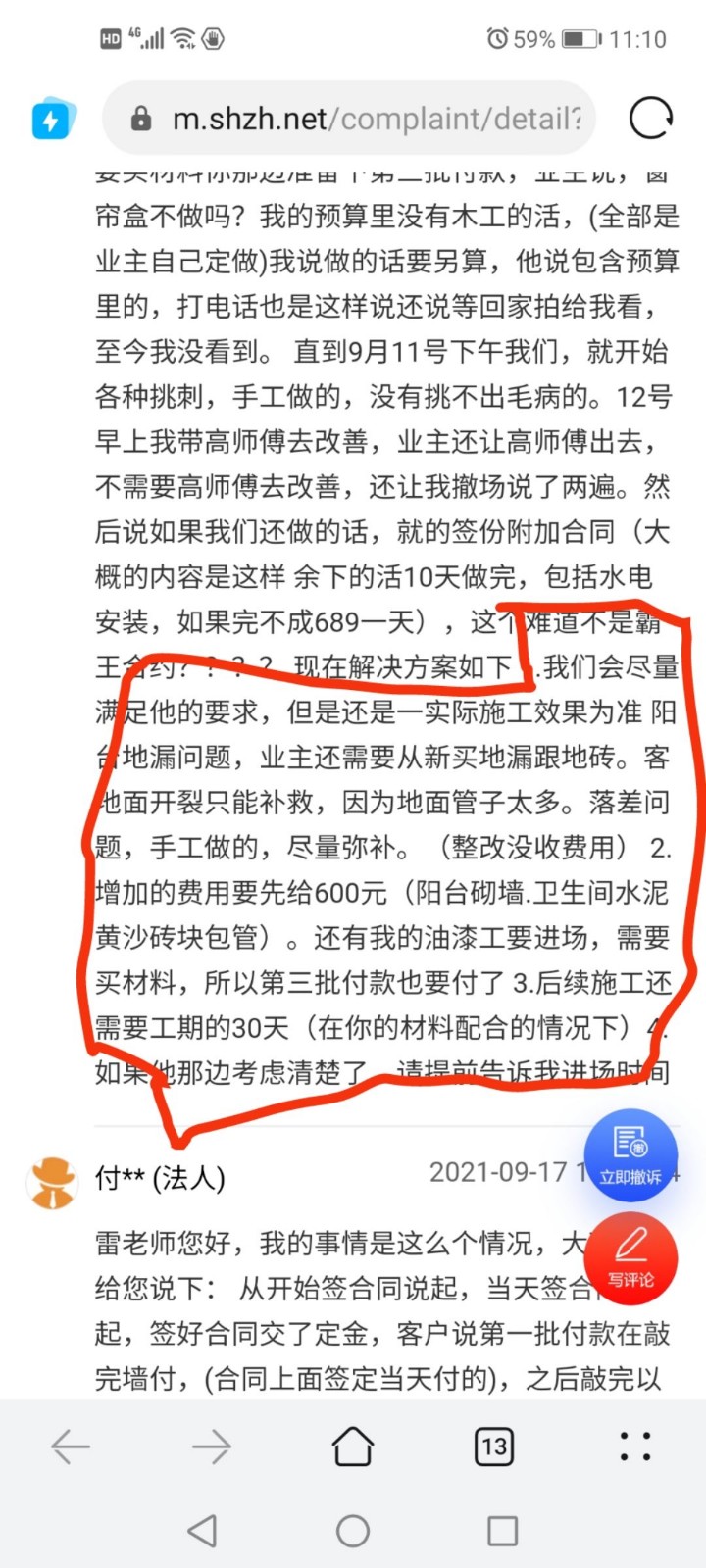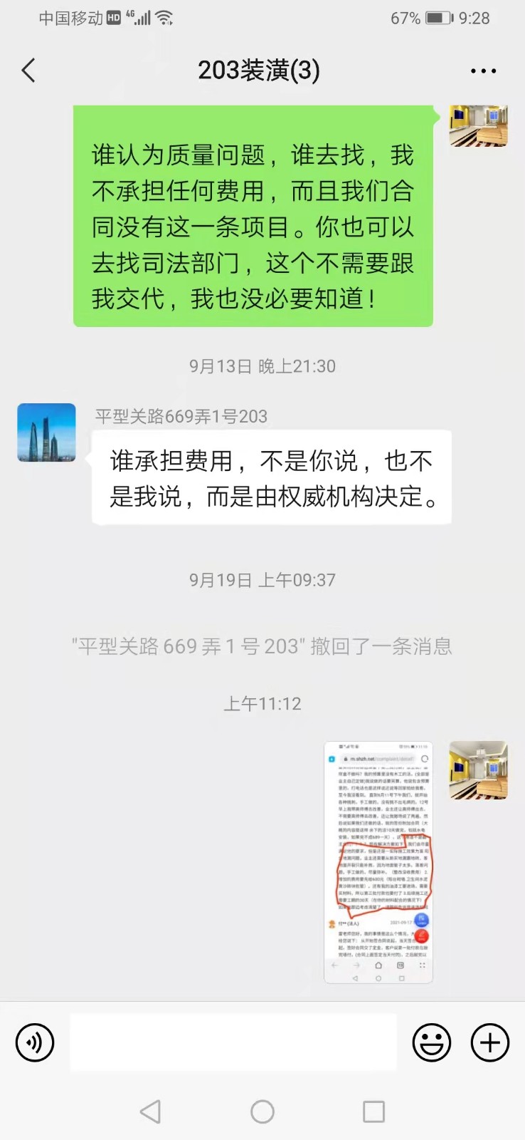 4.裝修公司不負責任,惡意延期迫使業(yè)主為自己的問題買單:出現(xiàn)質量問題后,裝修公司居然要求業(yè)主出錢才上門整改,距離我們提出問題已經10天,但裝修公司以業(yè)主不支付整改費用為由拒絕進場
