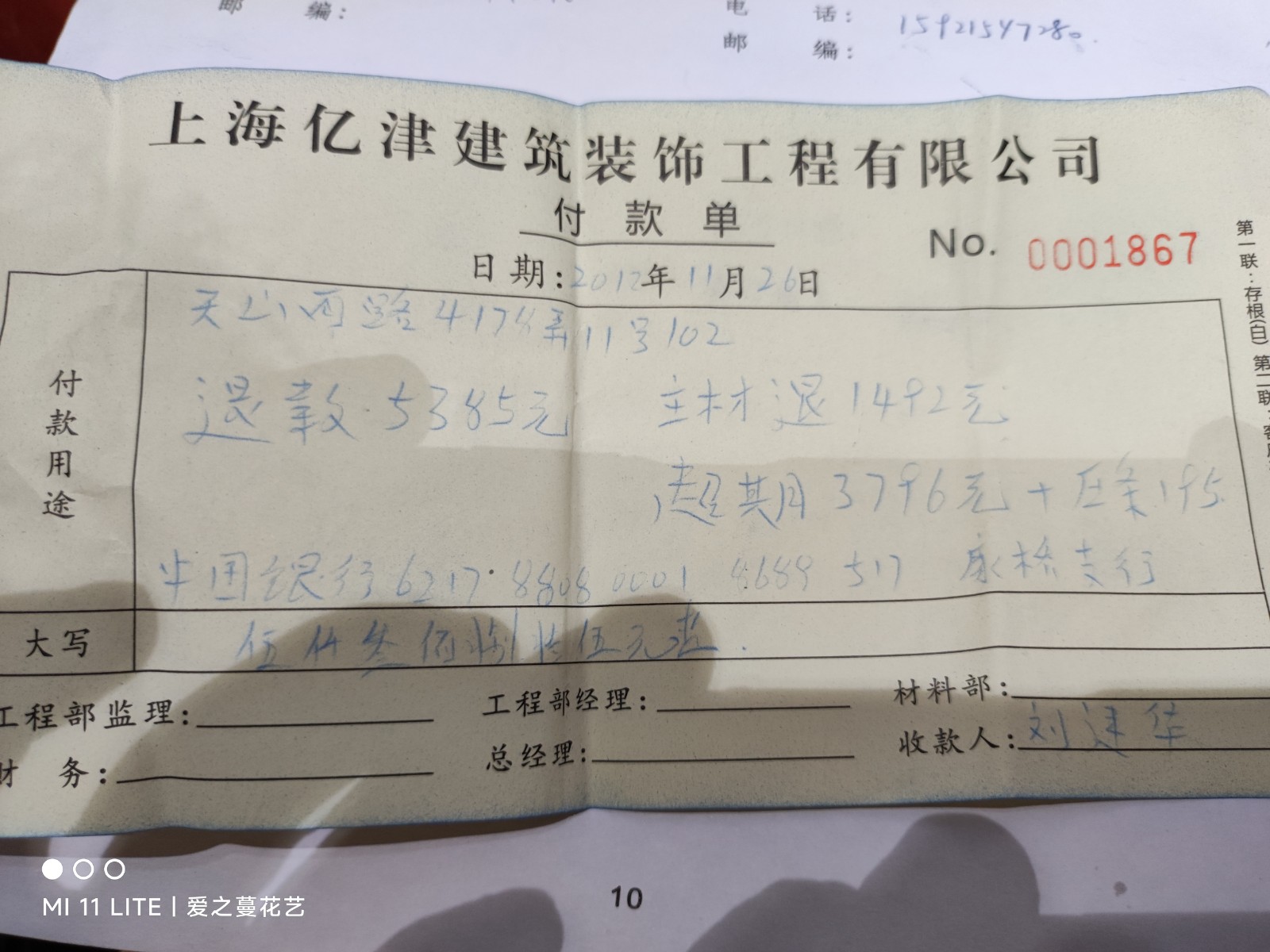 | 投訴類型 | 合同糾紛 | 投訴人 | 劉** | 被投訴單位 | 上海億津建筑裝飾工程有限公司 |