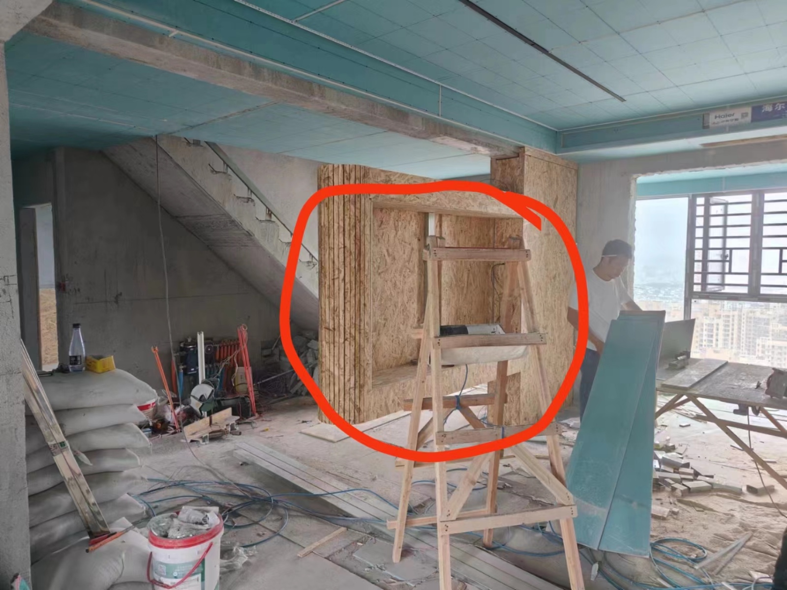 4、8月22號(hào)焊懸浮電視背景墻鋼架,用料薄了晃得厲害,拆了,9月19日第二次焊鋼架,我們把要求發(fā)在群里,之前也溝通過(guò)怎么做,也有效果圖,結(jié)果做出來(lái)效果完全不一樣,第三次我們自己找?guī)煾抵匦掠肿隽穗娨暠尘皦Α?br />5、木工做的吊燈,老公身高177,伸手就能夠到吊燈,因此返工,裝修公司要我們承擔(dān)返工費(fèi)用。