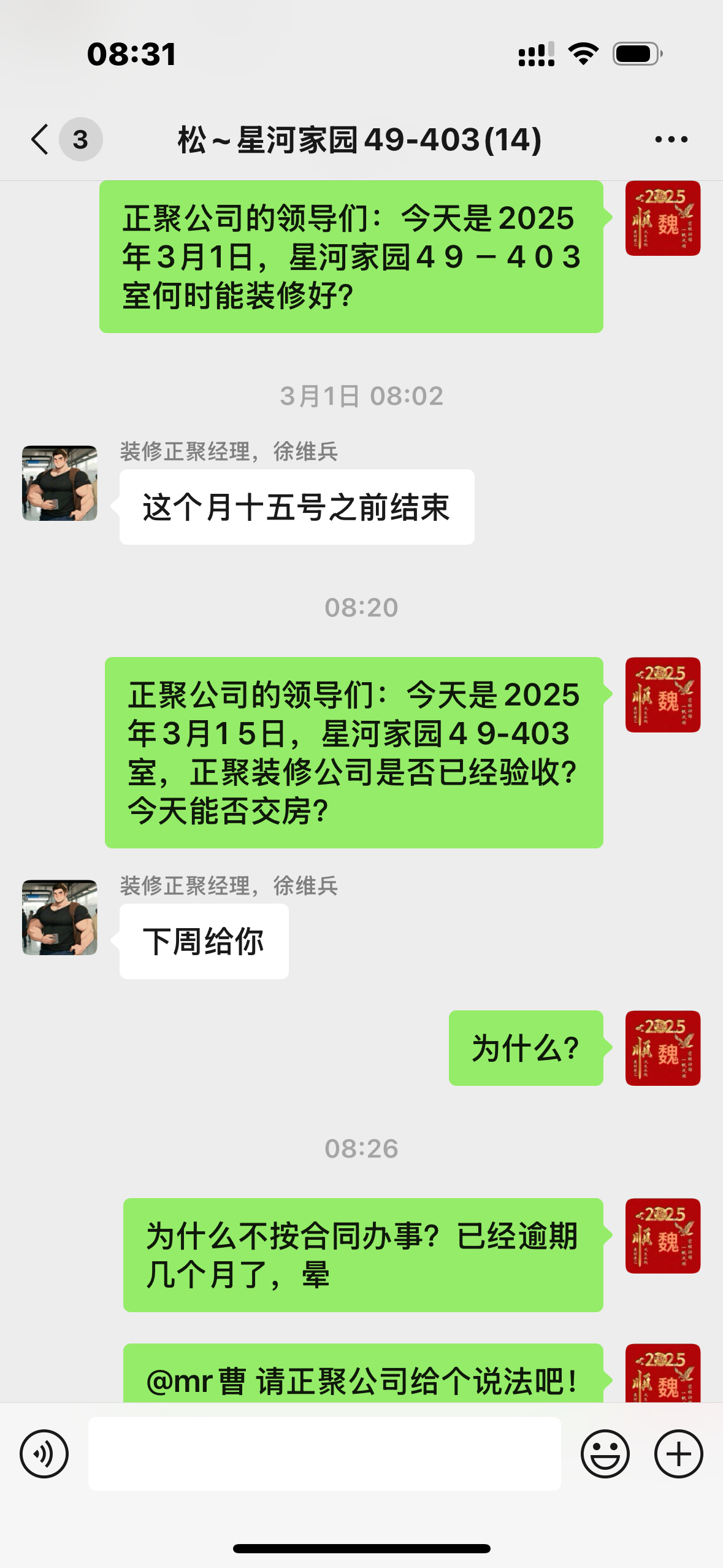 | 投訴類型 | 施工拖延 | 投訴人 | 魏** | 被投訴單位 | 上海正聚裝飾工程有限公司(南通分公司) |