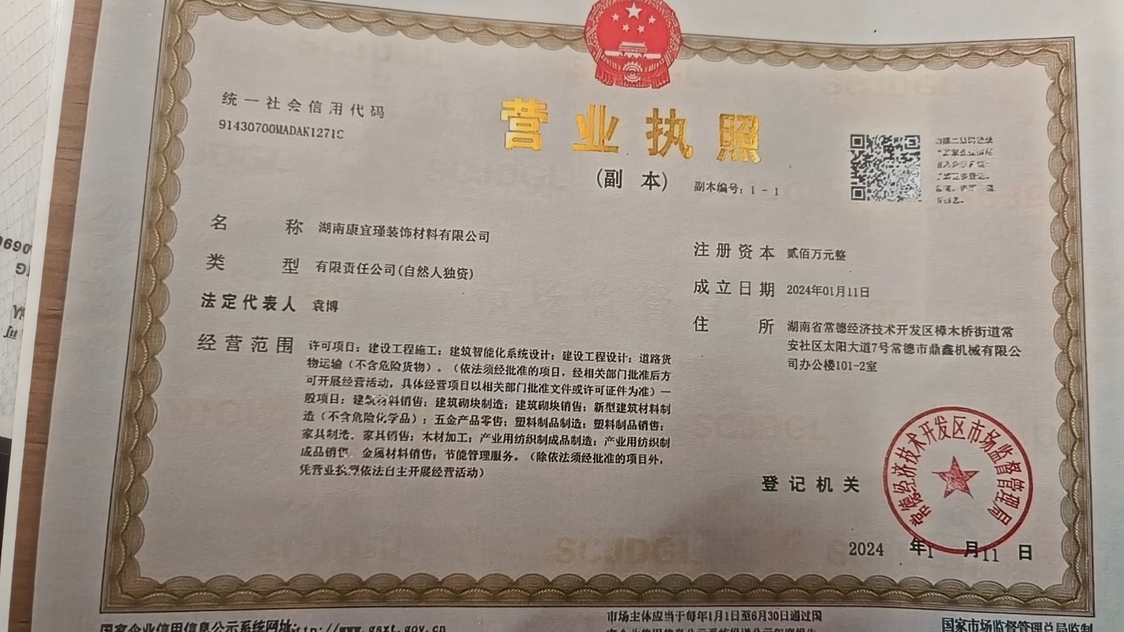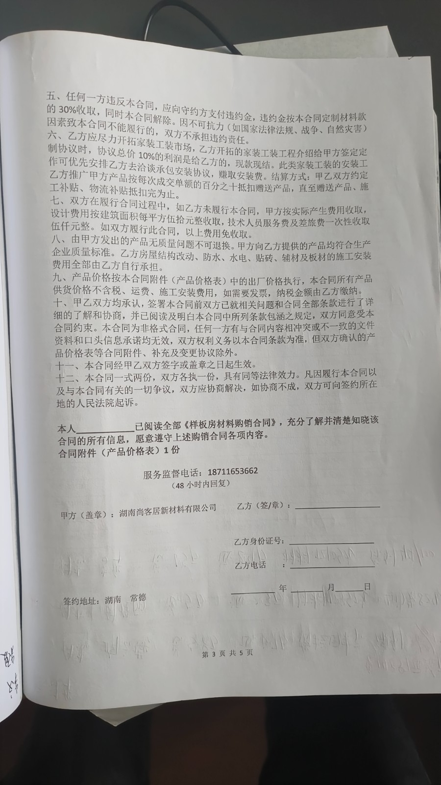 原告在2024年10月07日與湖南康宜瑾裝飾材料有限公司簽訂了12萬(wàn)3千元樣板書(shū)合作合同。地址在湖南省常德市武陵區(qū)太陽(yáng)大道與桃林路交叉口南260米路西.