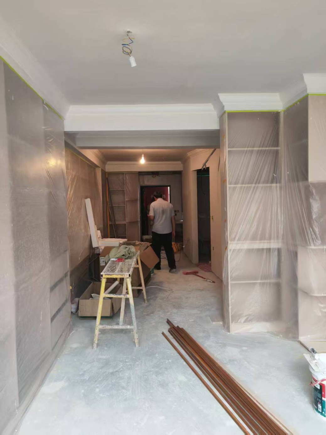 業(yè)主洪先生家油漆施工階段現(xiàn)已經(jīng)結(jié)束了,油漆工程也是施工項目中重中之重,一遍強固,一遍石膏,兩遍膩子,一遍底漆,兩遍面漆,每個步驟做完一定要關(guān)窗自然陰干,干透后再進行下一遍,防止墻面開裂、反堿起皮,吊頂上有釘眼的地方一定要先刷防銹漆,墻面所有縫隙先用嵌縫石膏填補,吊頂接縫處先用嵌縫石膏填縫再貼兩層繃帶,防止開裂。,乳膠漆完成后后續(xù)就是安裝階段啦,新家一天一個摸樣,感謝陳先生從開工到現(xiàn)在配合與支持,僑鴻定當(dāng)交給您一個溫暖的家!