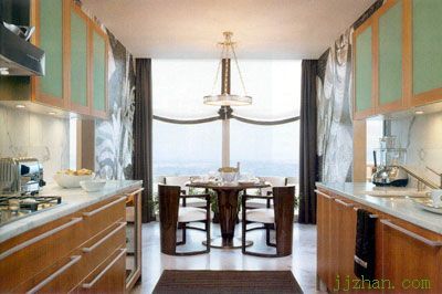 島型格局也就是開放式格局,是近年來比較流行的設(shè)計方式。許多家庭雖然廚房不夠?qū)挻?,卻將其與客廳之間打通,是烹飪、就餐,會客在同一空間。這樣的處理方式很具有親和力,一家人以就餐區(qū)作為餐前及餐后的活動中心區(qū),使烹飪者不再孤獨,也會減輕勞作的枯燥感。