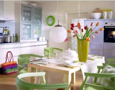 飯桌顏色應(yīng)以選擇有生命力的顏色為主,以便刺激食欲,但純黑色與純白色為不宜。飯桌形狀多種多樣,傳統(tǒng)的中國飯桌大多以圓形為主,象征一家團(tuán)圓。