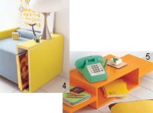 4 這是一個(gè)非常有酷感的沙發(fā),檸檬黃與灰色搭配出洗練透亮的感覺(jué)。當(dāng)然這款造型奇特的臺(tái)燈也功不可沒(méi),沙發(fā)扶手還兼有茶幾和儲(chǔ)物的功能。