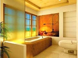 答:衛(wèi)浴間里設(shè)計(jì)了雙盆洗臉池,洗浴區(qū)、座廁區(qū)、休息區(qū)和化妝區(qū)分隔鮮明。浴缸區(qū)正好沿著一個(gè)大窗戶,陽光灑下來,整個(gè)浴室好像都會沉浸在半透明的光輝之中,把整個(gè)空間的歐式古典風(fēng)情烘托得更加浪漫。