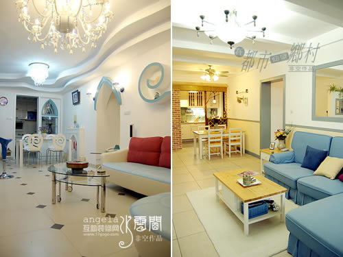 考慮到海濱大環(huán)境的因素,我給這兩家都定了帶點(diǎn)海洋風(fēng)格的“藍(lán)調(diào)”,在不變動(dòng)戶型結(jié)構(gòu)的前提下;一個(gè)用柔美曲線來(lái)表現(xiàn)其嫵媚和流動(dòng);一個(gè)用硬朗的直線條展示粗放和閑適。通過(guò)不同風(fēng)格的硬軟裝飾元素加以區(qū)分,家具、燈具、窗簾等元素則是走向兩個(gè)極端,于是便有了這兩個(gè)同一個(gè)“模子”做出來(lái)的不同風(fēng)格的作品。當(dāng)然,這兩家人也私下偷偷問(wèn)我比較滿意哪家,答案!!當(dāng)然是誰(shuí)問(wèn)我我就喜歡誰(shuí)家...