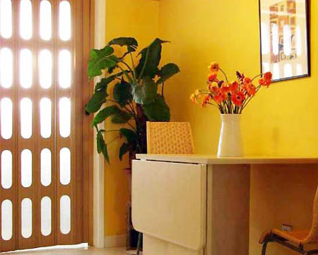 即一開(kāi)門(mén)就見(jiàn)到綠色植物,生趣盎然,又可收養(yǎng)眼明目之功效。